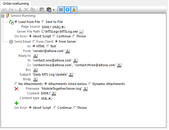 Once a service is defined in MobileTogether Designer and deployed the your MobileTogether Server, the administrator can configure the service to start automatically according to a customizable system of criteria: time triggers, file system triggers, HTTP triggers, or a combination of multiple events.