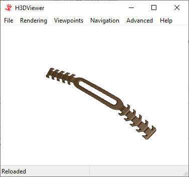 Let’s start with a 3D-printable shape. In the screenshot below we opened a file and used the Tools menu to also open it in the H3DViewer app: