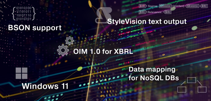 Altova Software Version 2022 is now available, with exciting new support for mapping and converting NoSQL databases in MapForce, pure text report output in StyleVision, and Windows 11 across the product line. The release also adds support for the exciting new OIM standard from XBRL International.