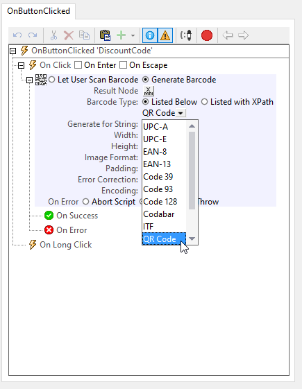 Drawing barcodes and QR codes: Now, in addition to reading barcodes/QR codes via the device camera, apps built in MobileTogether can be configured to draw them for applications such as inventory management, POS discounting, etc. A variety of barcode types are supported, including UPC, EAN, QR, and others.