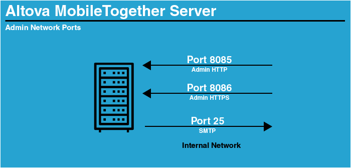 Configuring MobileTogether Server to work properly on your network will require some changes to be made. MobileTogether Server is designed to sit within your network’s DMZ, and enabling it to accept connections from clients both inside and outside your network will require your network administrator to open a collection of ports.